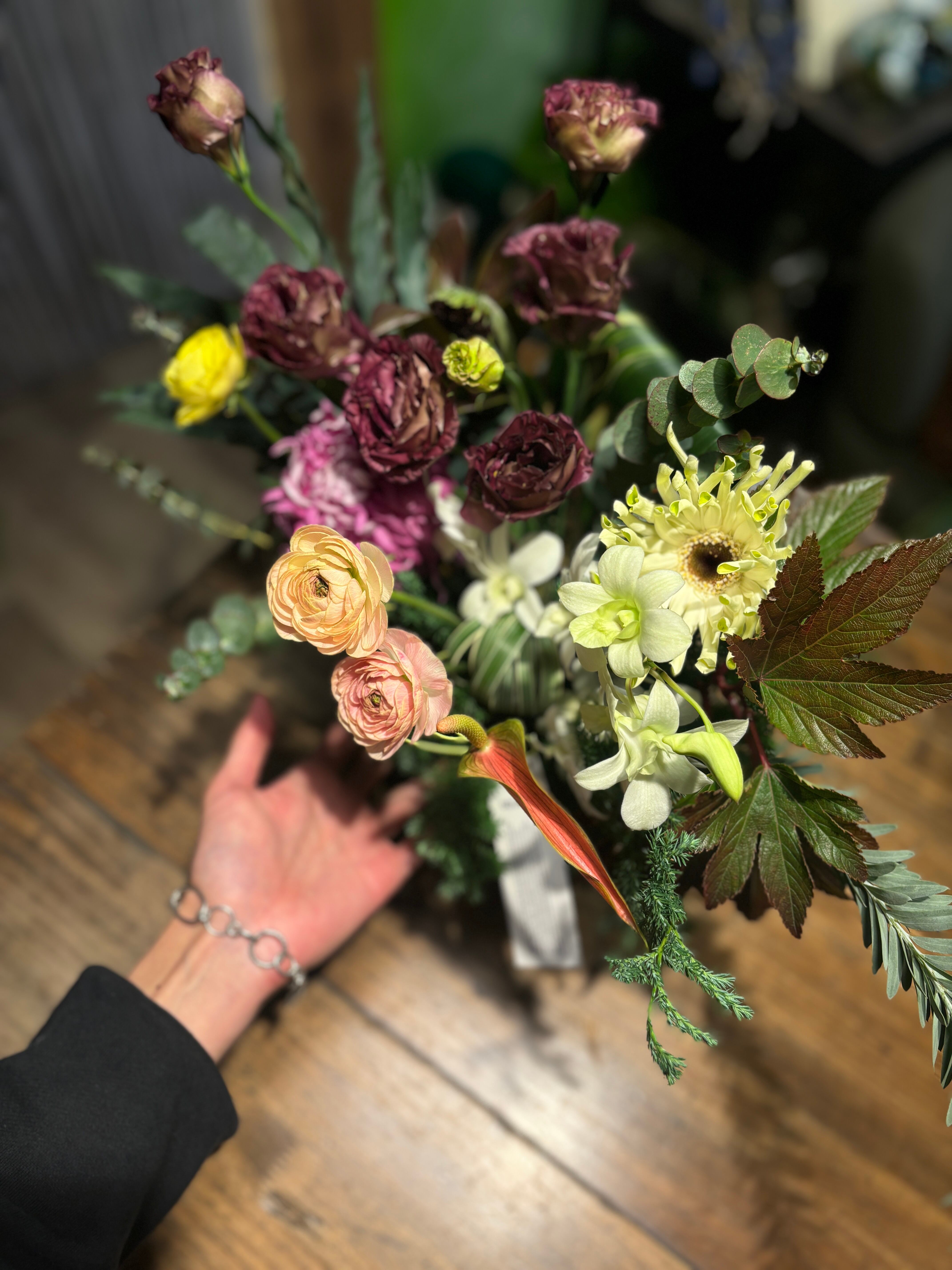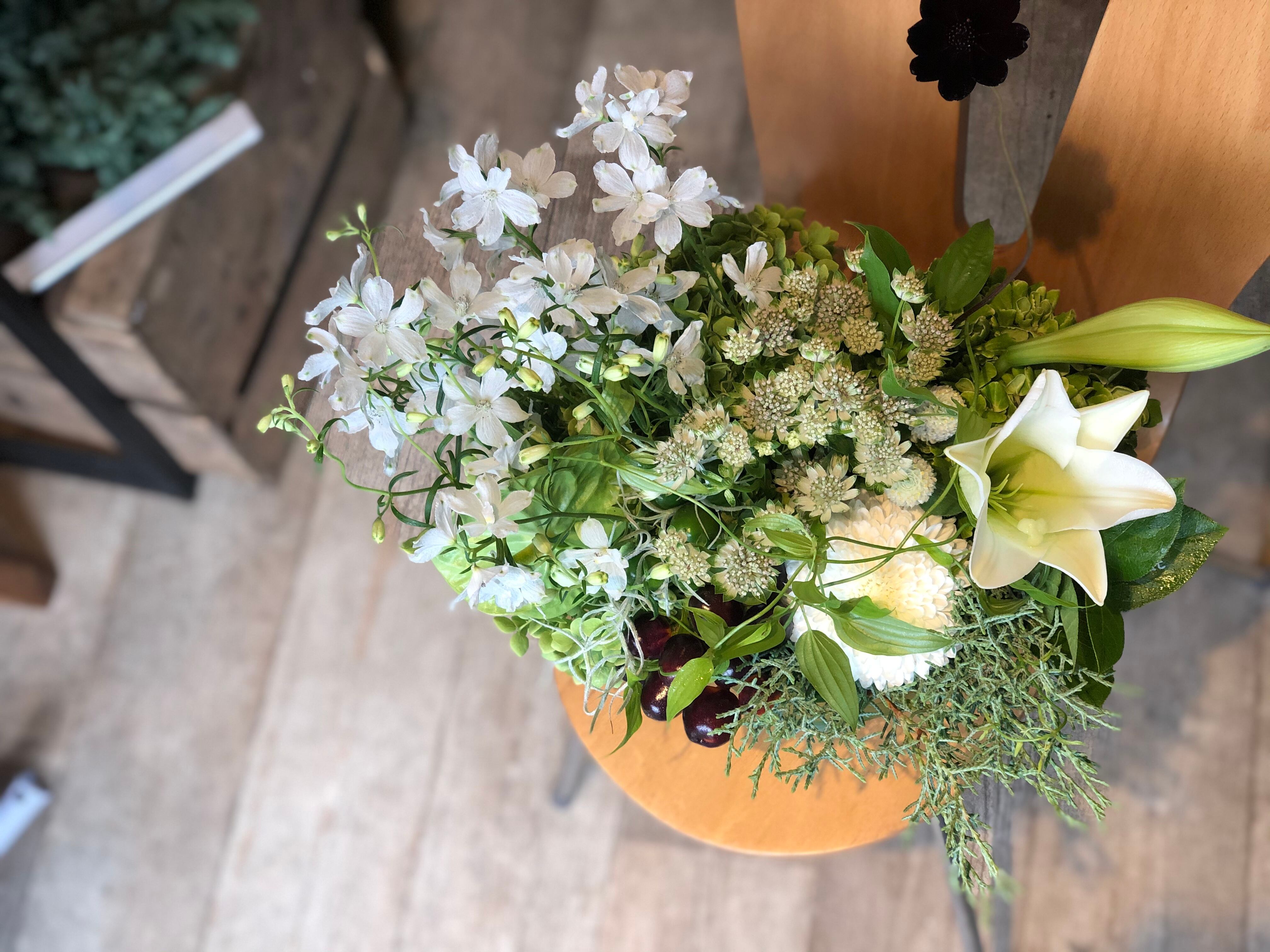 心がズッキューンする季節のお花を、店主パッションと皆様のご要望をミックスしてお作りします。 ★お花の写真は参考用です。お花のご希望を選択出来ます! ★写真2枚目は左8800円、右5500円の例です。 ★写真3、4枚目はオプションでお花を2000円増量しています。 ★高さ約、幅約30〜40センチ ★一部の写真に葉っぱ巻きの器を使用しています。ご希望の方は別途オプション商品からカートに追加して購入下さい。https://oblaat.thebase.in/items/94290791 ★ガラス花瓶は別売りです。(飾る際に花瓶が必要になる花束の例です。) ★左右に対で飾る場合は数量2で購入頂き、もしデザインをそれぞれ変えたい場合は備考欄に記載ください。 ★ お花増量は下記に項目がない場合はオプション単品で出品中。必要な方はカートに追加して購入ください。https://oblaat.thebase.in/items/94294154 【重要】 ■サイトの仕様上、送料無料表記がある場合がありますが、お届けの場合は送料を頂戴しております。 ■日曜日は花屋からの配達を行っておりません。前日着または宅急便もご検討ください。 ■無人花屋では簡単に作れるギフトキット、ドライフラワー、花瓶などもご用意しております。 ■花屋から直接配達時の送料 ・a 短距離880円▷長距離地域を除く函館市内全般 ・b 長距離1100円▷北斗市方面、七飯方面、上湯川方面、西部地区方面、他