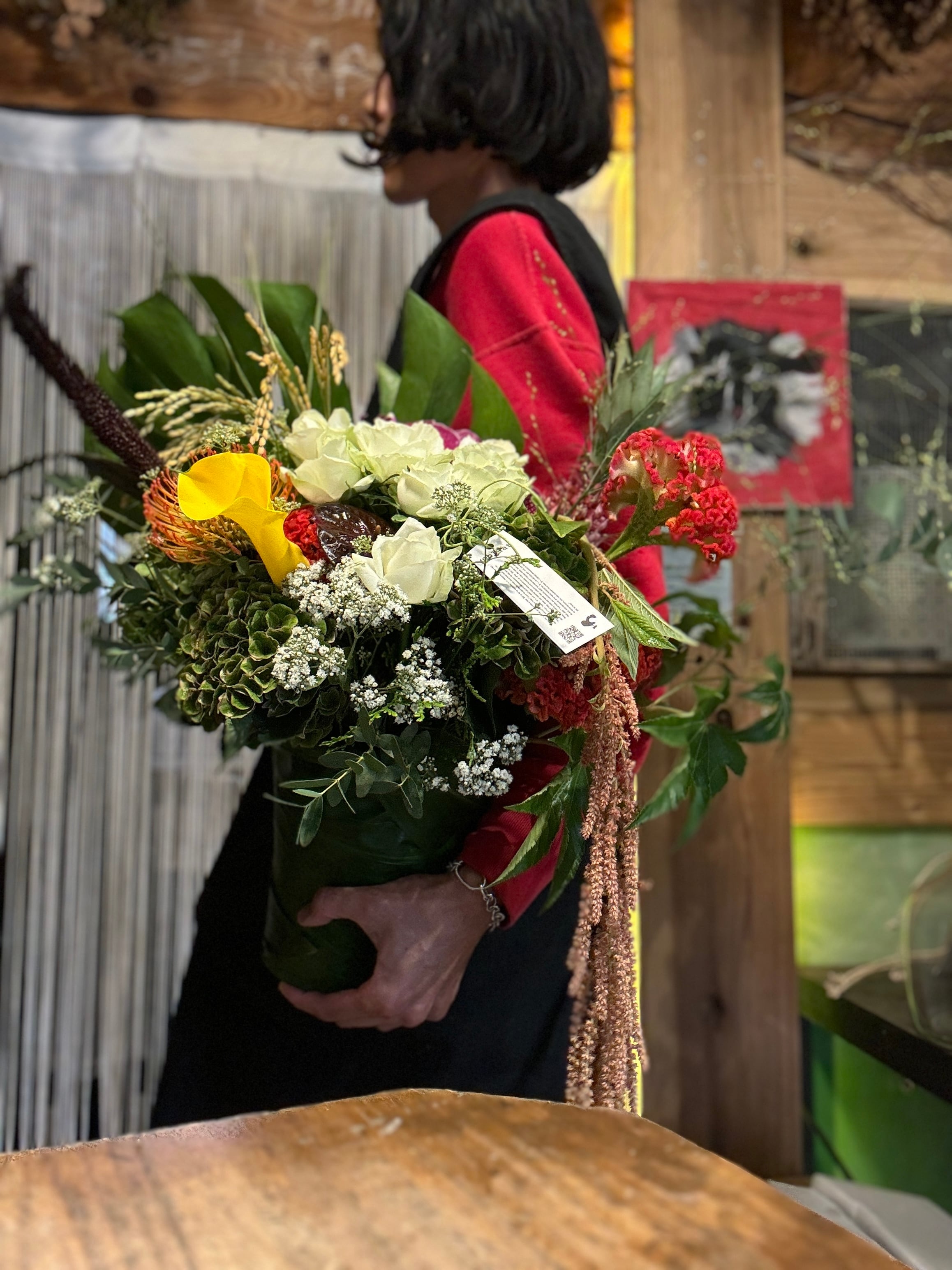 心がズッキューンする季節のお花を、店主パッションと皆様のご要望をミックスしてお作りします。 ★お花の写真は参考用です。お花のご希望を選択出来ます! ★高さ約50〜60センチ、幅約40〜50センチ程度〜。 ★一部の写真に葉っぱ巻きの器を使用しています。ご希望の方は別途オプション商品からカートに追加して購入下さい。https://oblaat.thebase.in/items/94290791 ★ お花増量はオプション単品での商品があります。必要な方はカートに追加して購入ください。https://oblaat.thebase.in/items/94294154 【重要】 ■サイトの仕様上、送料無料表記がある場合がありますが、お届けの場合は送料を頂戴しております。 ■日曜日は花屋からの配達を行っておりません。前日着または宅急便もご検討ください。 ■無人花屋では簡単に作れるギフトキット、ドライフラワー、花瓶などもご用意しております。お正月を除き、ほぼ年中無休で営業中です。 ■花屋から直接配達時の送料 ・a 短距離880円▷長距離地域を除く函館市内全般 ・b 長距離1100円▷北斗市方面、七飯方面、上湯川方面、西部地区方面、他